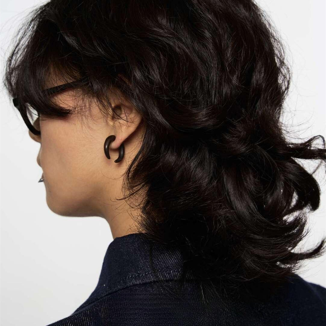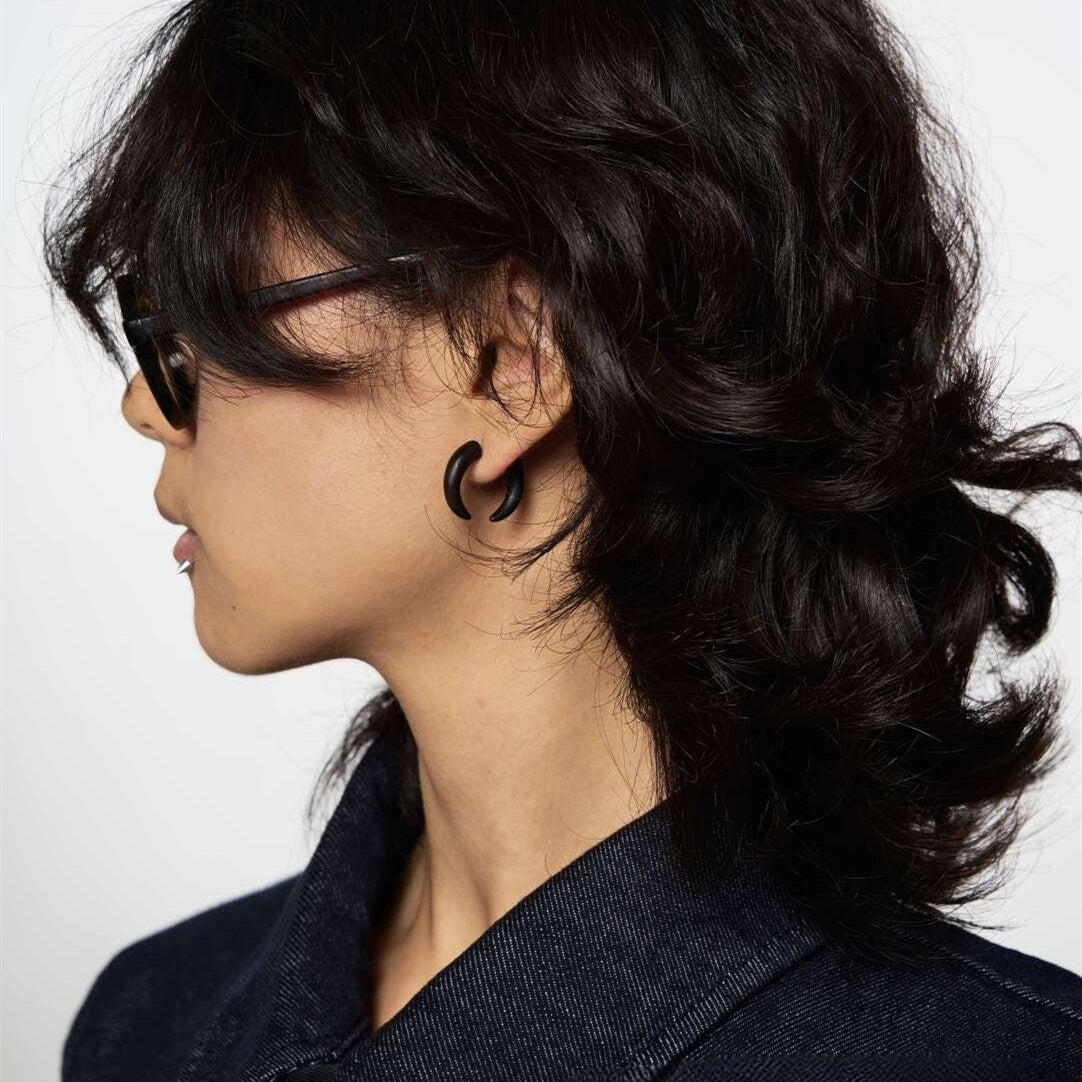 With a balanced size and slim profile, these black wooden hoop–style earrings are light and easy to wear throughout the day. The simple structure makes them suitable for work, casual outfits, or more styled looks.