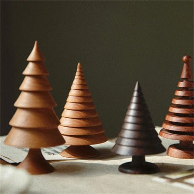 This Christmas tree gift set includes five unique pine tree decorations, each handcrafted with randomly combined wood materials. The size and style are varied, making each piece special. This design beautifully blends natural wood with the spirit of the Christmas tree, adding a warm and festive atmosphere to your home.